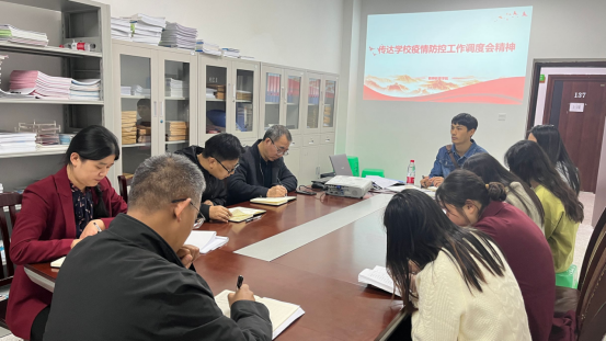 2022年11月7日19:30,437必赢会员中心在博学楼3栋129召开疫情防控与安全稳定专题会,党总支书记薛娟、院长潘勇、副院长许刚、副院长蒋文峰、党政办主任黄晓、学工办主任向红以及全体辅导员参会。